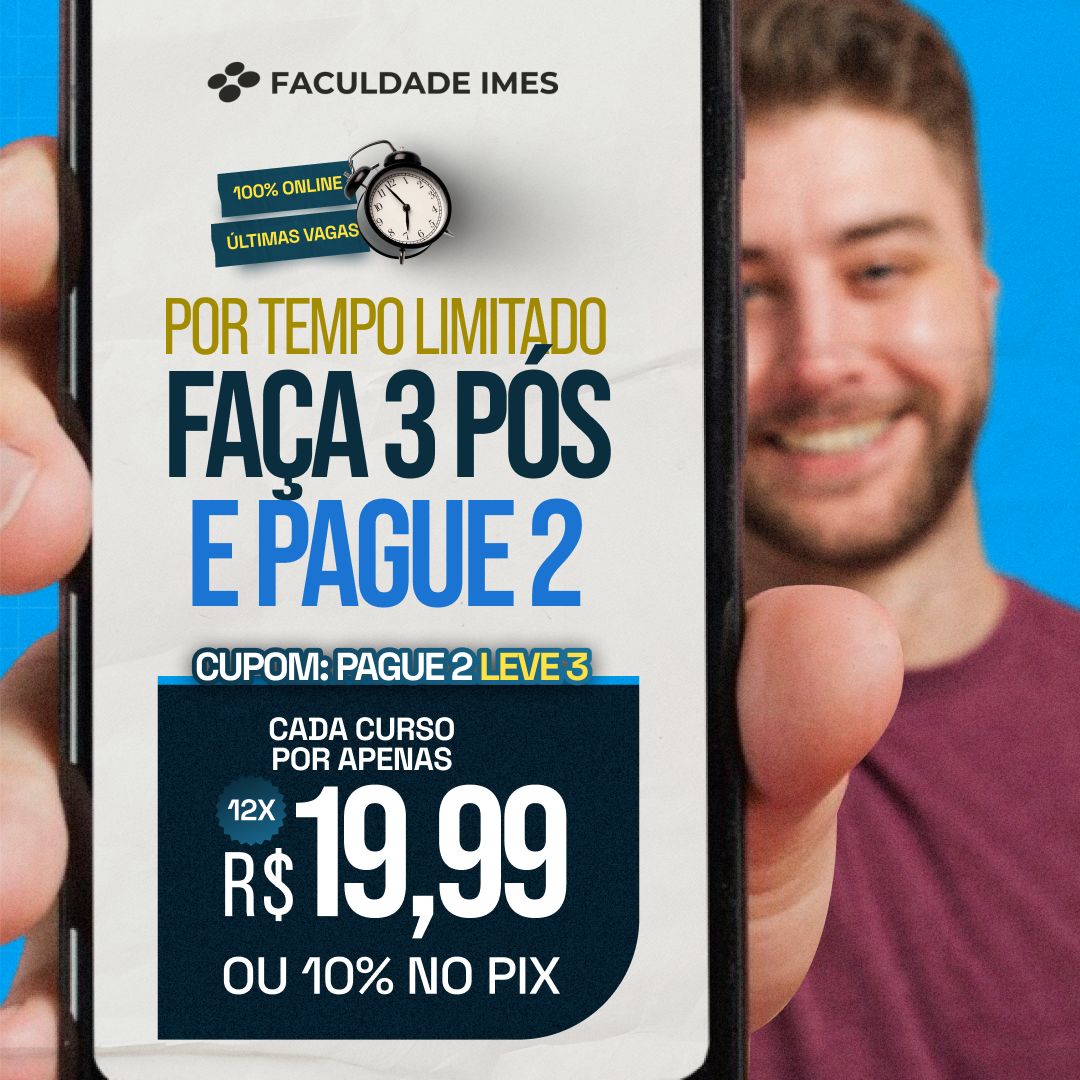 A elaboração do TCC não é mais obrigatória nos Cursos de Especialização, desde a Resolução nº 01 de 06/04/2018 do CNE/CES/MEC. A Faculdade IMES, todavia, mantém a Matrícula Opcional do cursista que deseja incluir a realização do TCC em seu Curso. Caso queira desenvolver o Trabalho de Conclusão de Curso, consulte nosso time sobre o valor adicional para matricular-se no TCC (inclui duas Disciplinas: Metodologia da Pesquisa Científica e TCC). A decisão pela contratação ou não do TCC deverá ser tomada no ato da matrícula.